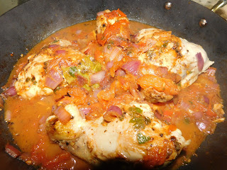 Heat a heavy sauté pan over medium high heat. I do not add any more oil for this because there is enough oil in the marinade. When the pan is hot, add the chicken and brown chicken for five minutes.